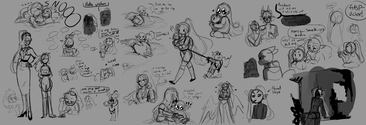 These are never just one sketch, but a set of little sketches of the character that are low effort and messy